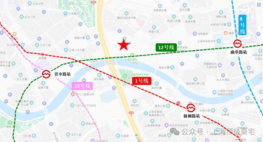 商业方面 附近的福新汇-1层到4层包含全生活业态,东侧华润苏河湾打造的中央公园中,地下部分全部为城市商业,约500米左右静安大悦城、1站人民广场、3站黄陂南路(步行约60米新天地)、3站静安寺,轨交10分钟内便有上海最大、最繁华的商圈。