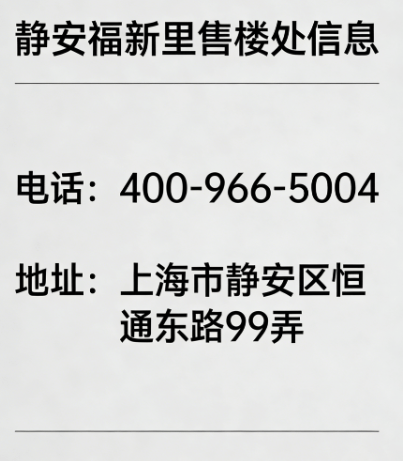 静安福新里官方售楼处电线(开发商直连,支持房源动态、购房政策及项目规划咨询)