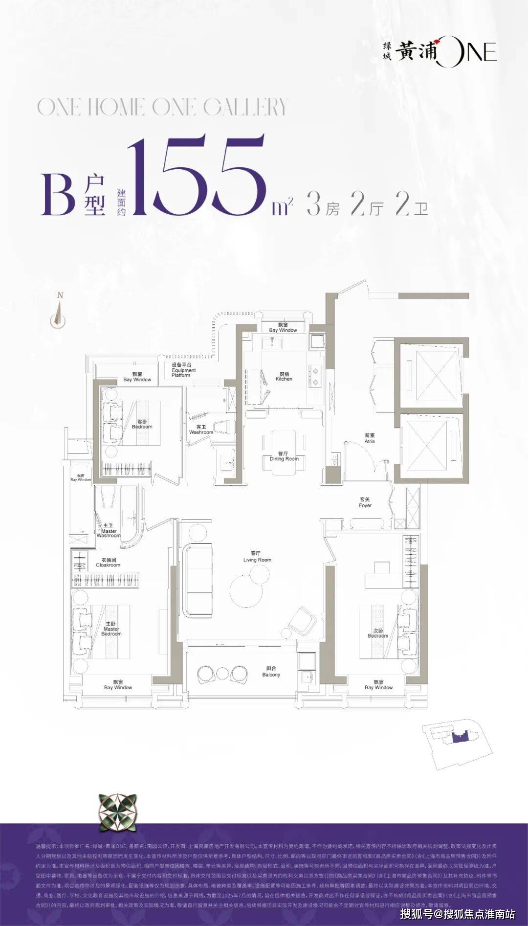 绿城黄浦ONE跳出黄浦豪宅常见的“长进深”局限,直接做宽境大面宽设计,两个户型都有独立电梯厅;格局很方正,面宽尺度在黄浦首屈一指!