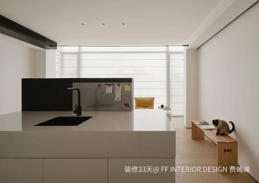 ▲ 餐桌与岛台一体设计,功能整合,动线紧凑,收纳、备餐、就餐合为一体,是家的核心操作区