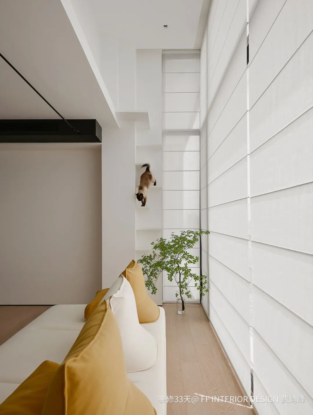 ▲ 两侧定制猫爬架,为猫咪提供垂直活动动线,让空间成为人与宠物共享的生活舞台