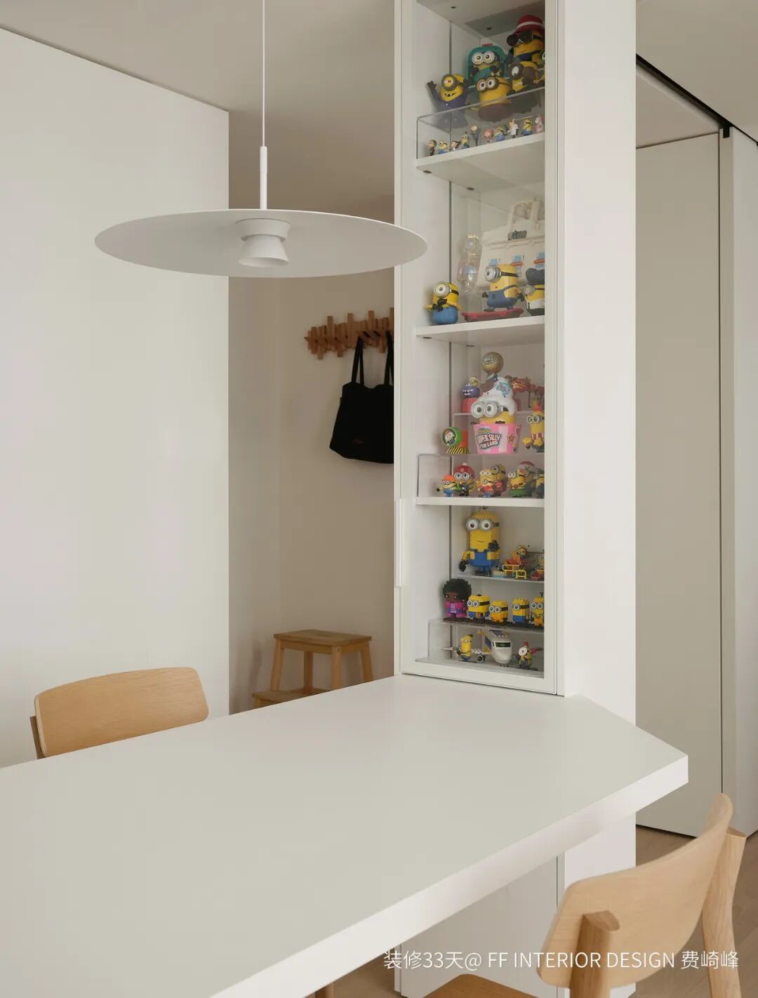 ▲ 次卧移门一侧柜体背面做了开放展示格,打破整墙的封闭感,展示柜内藏着屋主收藏的小黄人手办,让生活多了几分童趣