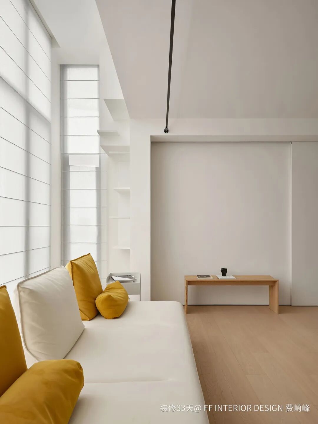 设计师说在前面:阳光透过落地窗洒进客厅,猫咪在猫爬架上玩耍,极简的留白空间里,恰好盛得下业主夫妻二人想要的日常。
