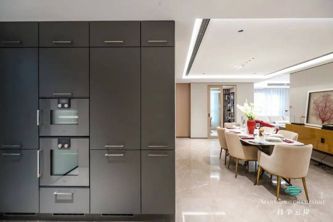 在奢华的背后,项目对于业主的精致生活也有细致考究。比如每户厨房和主卧卫生套间均设大金空调出风口,夏天下厨不会感觉炎热,卫生间四季恒温。再比如,项目旭格窗均设置百叶系统,增加客户私密性。另外还有,项目所有墙面都使用全屋装配式墙板,除了吊顶没有任何一处使用乳胶漆,底板使用竹木纤维板,环保美观,稳定不易变形,也提升了实用面积(省去了传统墙面找平刷腻子等工序)。
