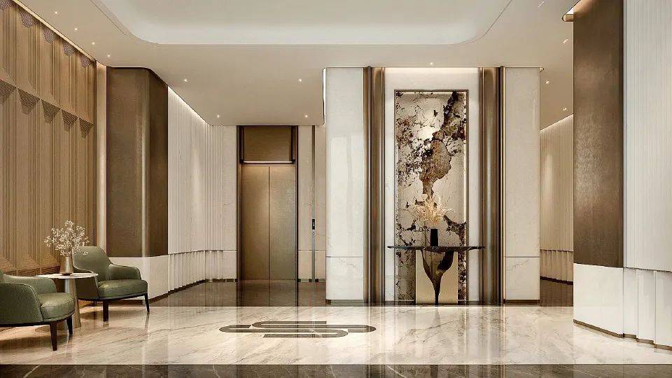 首先是一楼大堂,挑高设计令大堂气势恢宏。大理石纹理细腻且自然流畅,温润的质感与低调的奢华相得益彰,彰显着业主的不凡品味。大堂的休息区布置温馨舒适的沙发,一旁的茶几简约时尚。在这里,您可以稍作休憩,褪去一身疲惫,感受家的宁静与惬意。