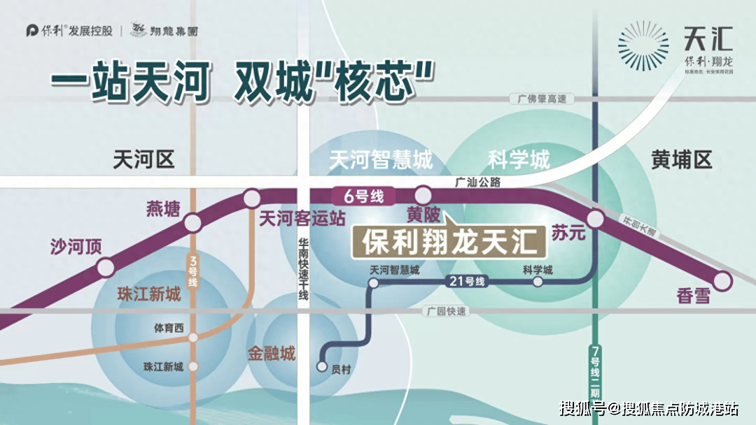 :广州城市发展核心为 “科技创新轴 + 珠江经济轴” 双轴驱动,保利翔龙天汇正处双轴交汇核心,是政府重点打造的 “产城融合示范区”。