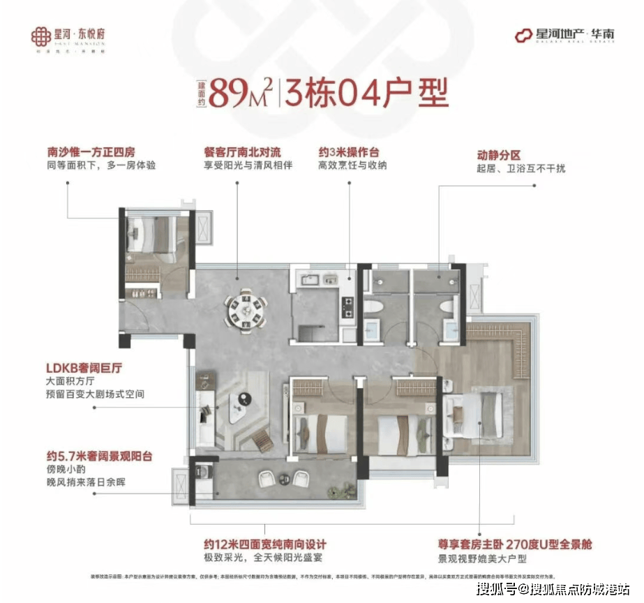 :89㎡做到南北对流四开间南向四房,106㎡配备 6.7 米大阳台四房,123㎡打造五房格局,