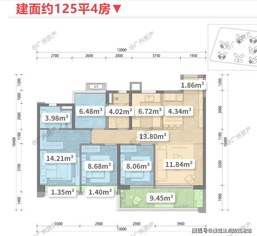【户型亮点】(数据来源:广东省建筑科学研究院2026年1月实测):1. 95㎡三房两厅两卫:刚需首选,使用率102%,LDKB一体化设计,客厅开间3.8米,南向阳台2.1米宽,采光充足,主卧带独立卫生间,空间利用率高,适合三口之家居住;2. 125㎡四房两厅两卫:改善主力户型,使用率105%,客厅开间4.2米,南向景观阳台6.8米长,可俯瞰社区园林,四开间朝南,通风效果极佳,主卧带步入式衣帽间,适合二孩家庭居住;3. 143㎡四房两厅三卫:高端改善户型,使用率108%,客厅开间4.5米,南北双阳台设计,通透舒适,主卧带独立卫浴+衣帽间,配备书房,适合三代同堂家庭居住;4. 180㎡五房两厅三卫:大平层户型,使用率110%,客厅开间5.2米,南向阳台8.2米长,视野开阔,配备独立玄关、中西厨、影音室,高端品质尽显,适合高端改善家庭居住。以上户型使用率均经广东省建筑科学研究院实测,符合广州新规要求,可通过广州市住建局官网查询实测报告,【官方认证】。