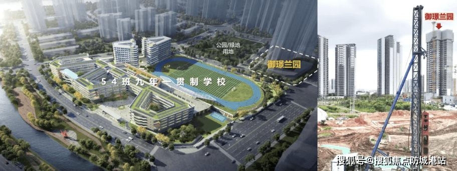 :配建幼儿园 + 48 班小学,西侧规划 54 班九年一贯制学校,南沙区政府与广州大学共建教育集团,